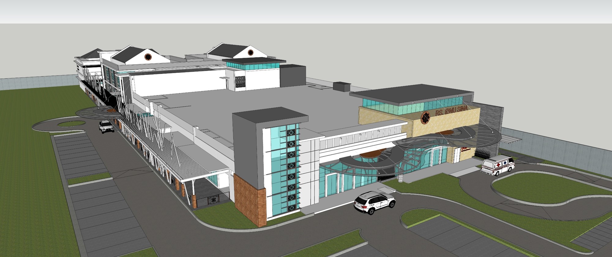 Salah satu konsep desain yang diangkat dalam rancangan rumah sakit ini adalah adanya penerapan EBD (Evidence Based Design). Dari banyak metode pencapaian EBD, salah satu yang coba diterapkan adalah optimasi visibilitas melalui penggunaan bukaan jendela dan view yang luas dari ruang dalam ke ruang luar. Hal ini diyakini dapat mempengaruhi psikologi pasien dan kemungkinkan mempercepat proses penyembuhan. Oleh karena itu, banyak digunakan elemen fasade kaca dan bukaan jendela pada sisi luar, untuk memaksimalkan view keluar bangunan.