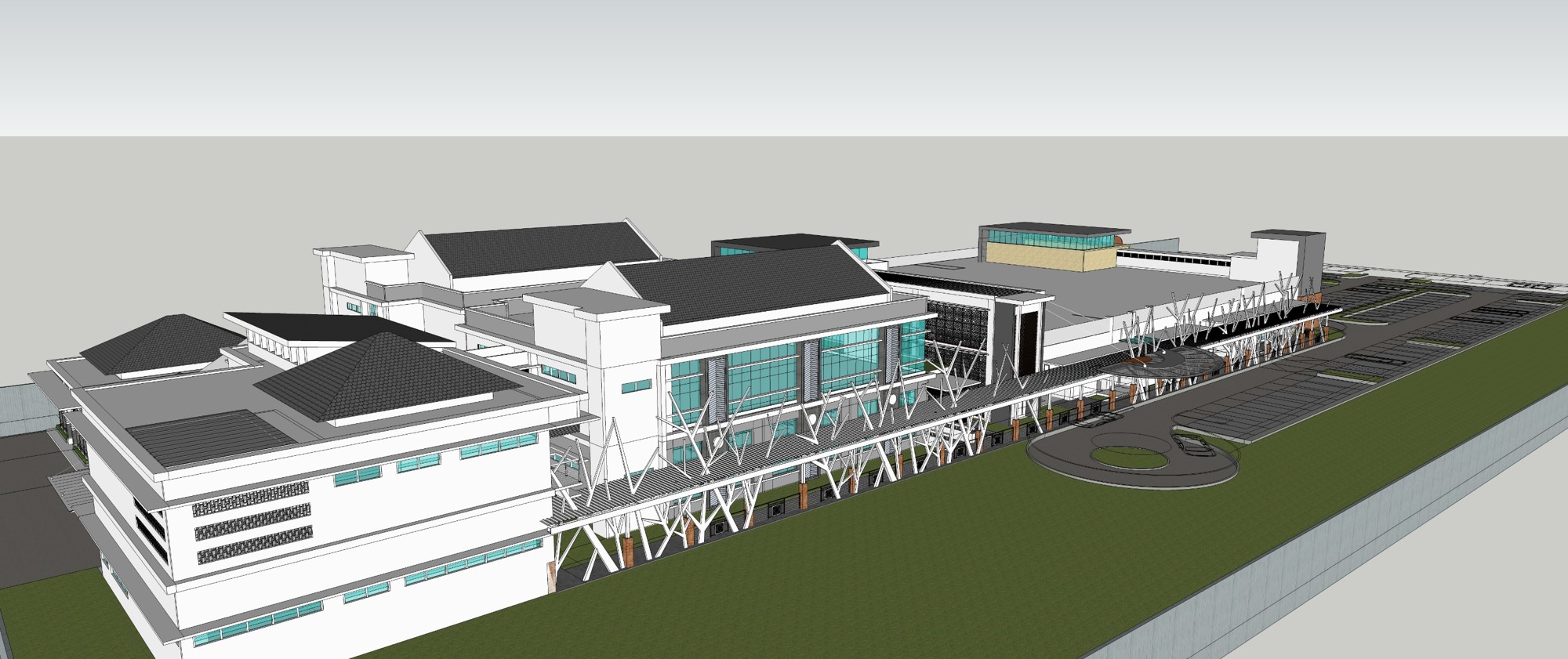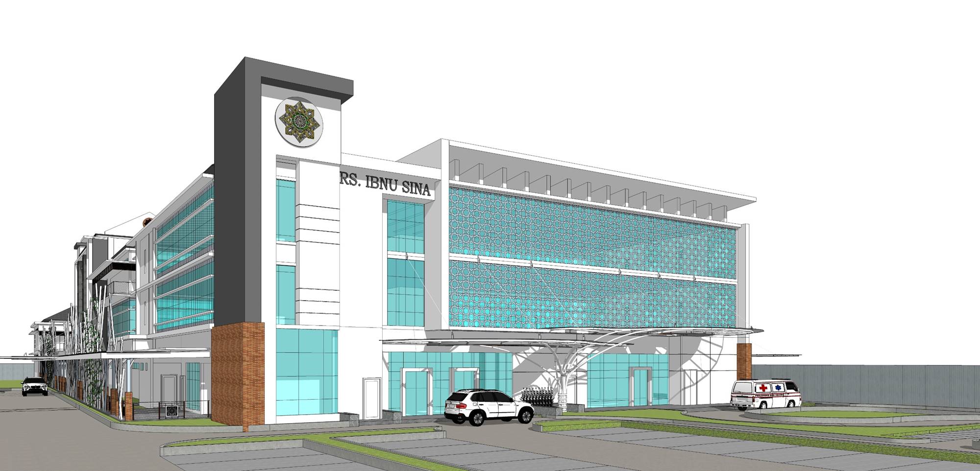 Karena lokasinya yang tidak berada di pinggir jalan utama, dan kondisi sekitarnya bukan kawasan pada penduduk serta tidak adanya kekhasan/karakter desain yang khusus, maka desain tampilan rumah sakit dirancang dengan bentuk modern kontemporer serta adanya sentuhan islami. Hal ini dilakukan agar bangunan rumah sakit ini terlihat menarik dan menonjol, namun tetap bersahaja. Di sisi lain, karena keterbatasan lahan site dan perkiraan pendanaan awal, maka desain rumah sakit ini dibagi menjadi 2 tahap. Dalam Masterplan, rumah sakit ini dirancang sebagai RS Kelas C, tetapi pada tahap pertama, rumah sakit ini dibangun sebagai RS Kelas D dahulu.