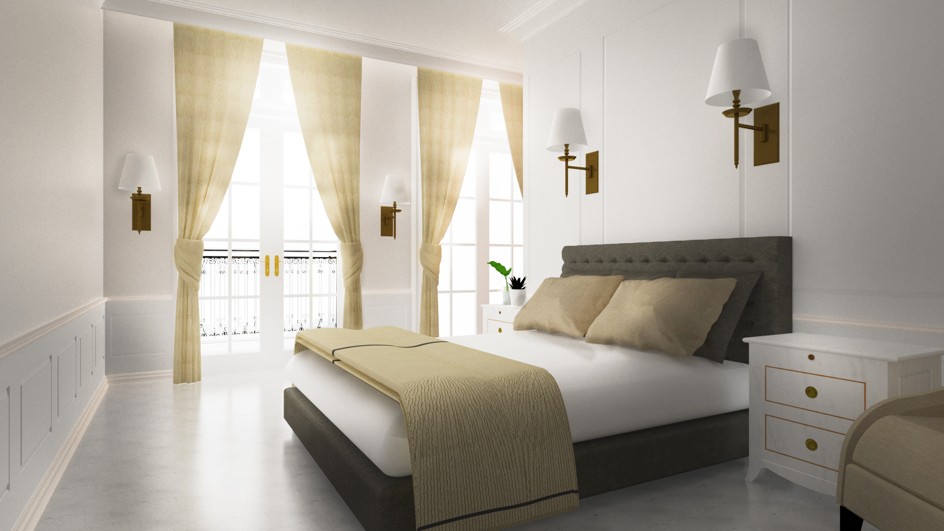 Ide dan aspirasi pemilik ini direspon dengan mengusung konsep “Queen House – Classic Modern House”. Bentuk bangunan dirancang massif dengan skala dan proporsi bukaan yang besar serta kombinasi penggunaan pilar-pilar besar, seperti yang menjadi ciri khas bangunan-bangunan bergaya klasik. Agar karakteristik gaya arsitektur klasik yang ditampilkan tidak terlalu rumit dan berat, tapi juga mampu mendukung gaya arsitektur modern yang akan diakomodasi, maka ornamen yang ditampilkan cenderung mengambil bentuk geometri sederhana, tanpa motif ukiran maupun bentuk lengkung/arch yang terlalu banyak. Sedangkan, konsep arsitektur modern diterapkan pada pola tata ruang yang bebas, tidak simetris seperti yang terjadi pada bangunan-bangunan klasik, dan aplikasi material baru/modern yang menunjukkan nuansa kekinian.