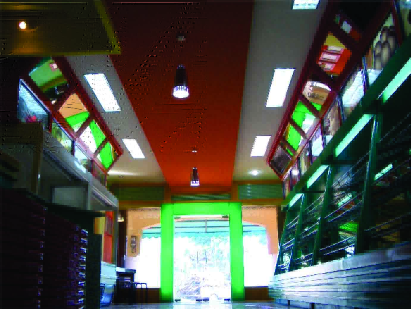 “Fresh and green”, itulah konsep yang coba dihadirkan ke dalam interior bangunan. Sesuai dengan fungsi dan representasi bangunan yang merupakan toko yang menjual sayur dan buah-buahan.