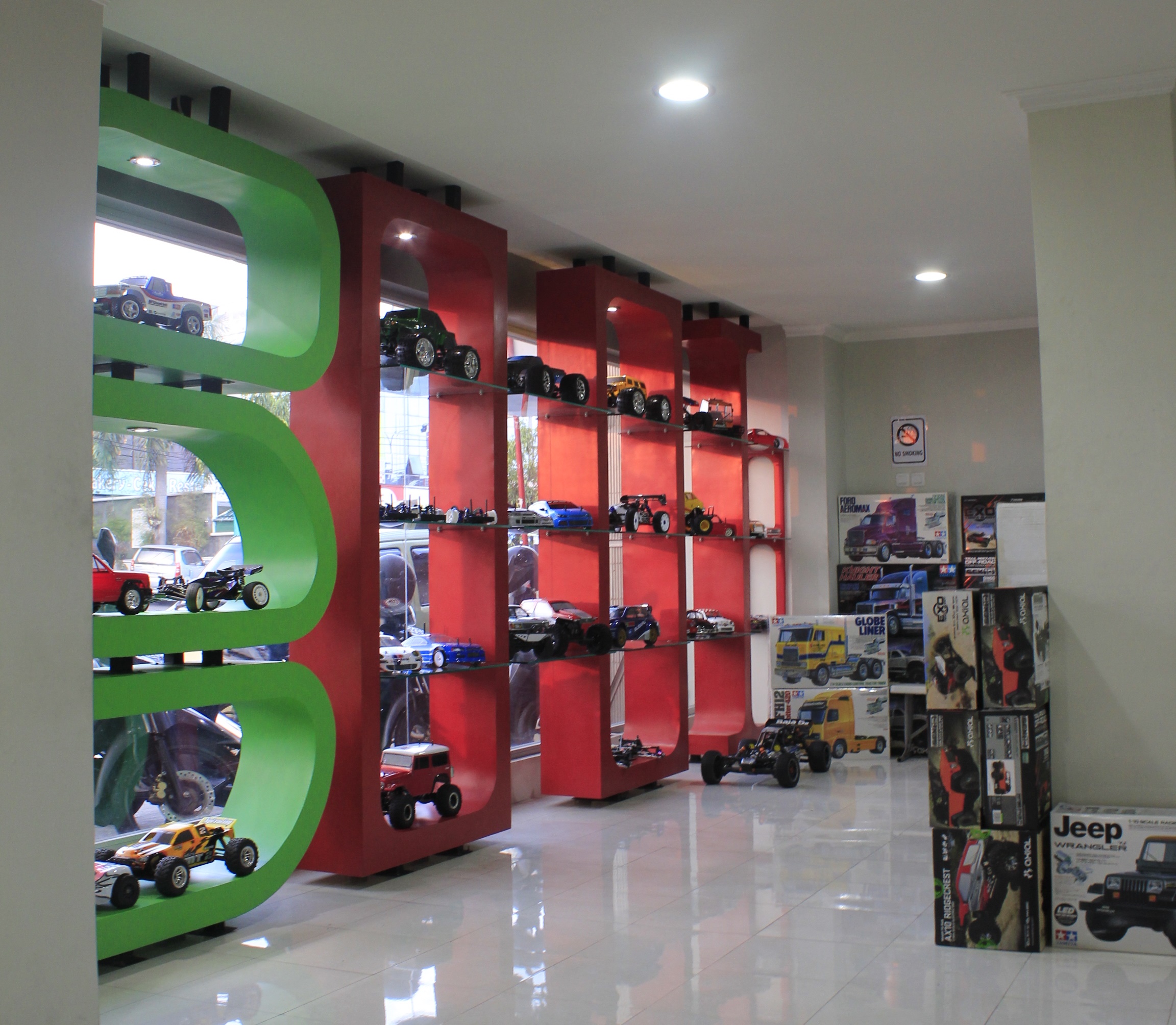 Fungsi yang diwadahi terdiri dari dua bagian yaitu bagian penjualan dan bagian arena bermain.. Fungsi ini mempengaruhi pembagian tata ruang pada bangunan. Bagian penjualan mobil mainan terletak di lantai 1 untuk mendukung fungsi kegiatan yang bersifat publik sehingga ruang yang mudah diakses, sedangkan workshop dan area bermain terletak di lantai 2 untuk mendukung fungsi kegiatan yang lebih privat dan mendukung fungsi keamanan dan kenyamanan bagi pengguna dan pengunjung.
